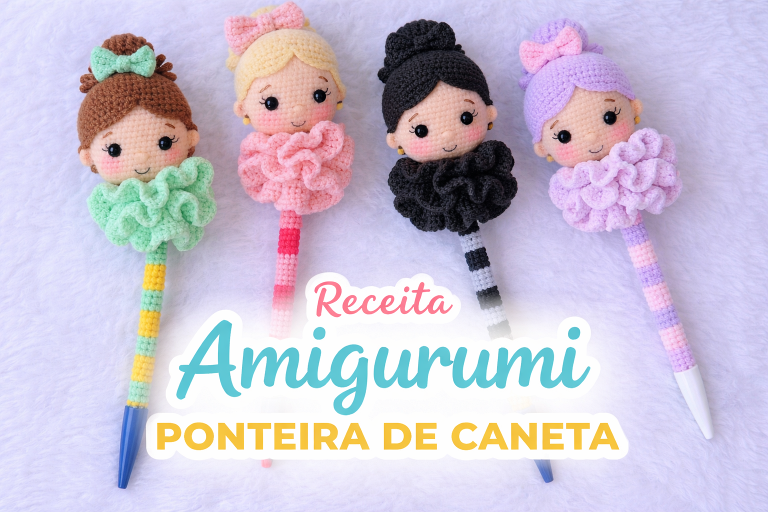 Receita completa de amigurumi de ponteira de caneta com bonequinha: passo a passo profissional